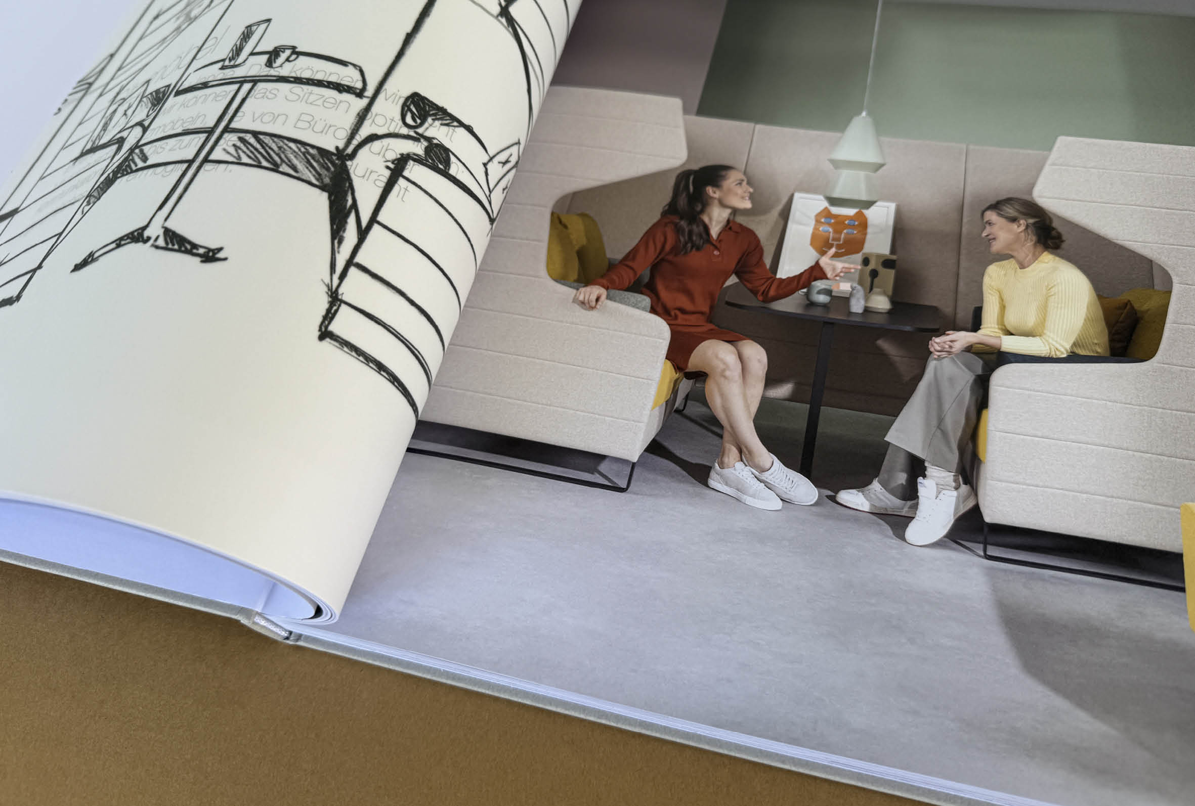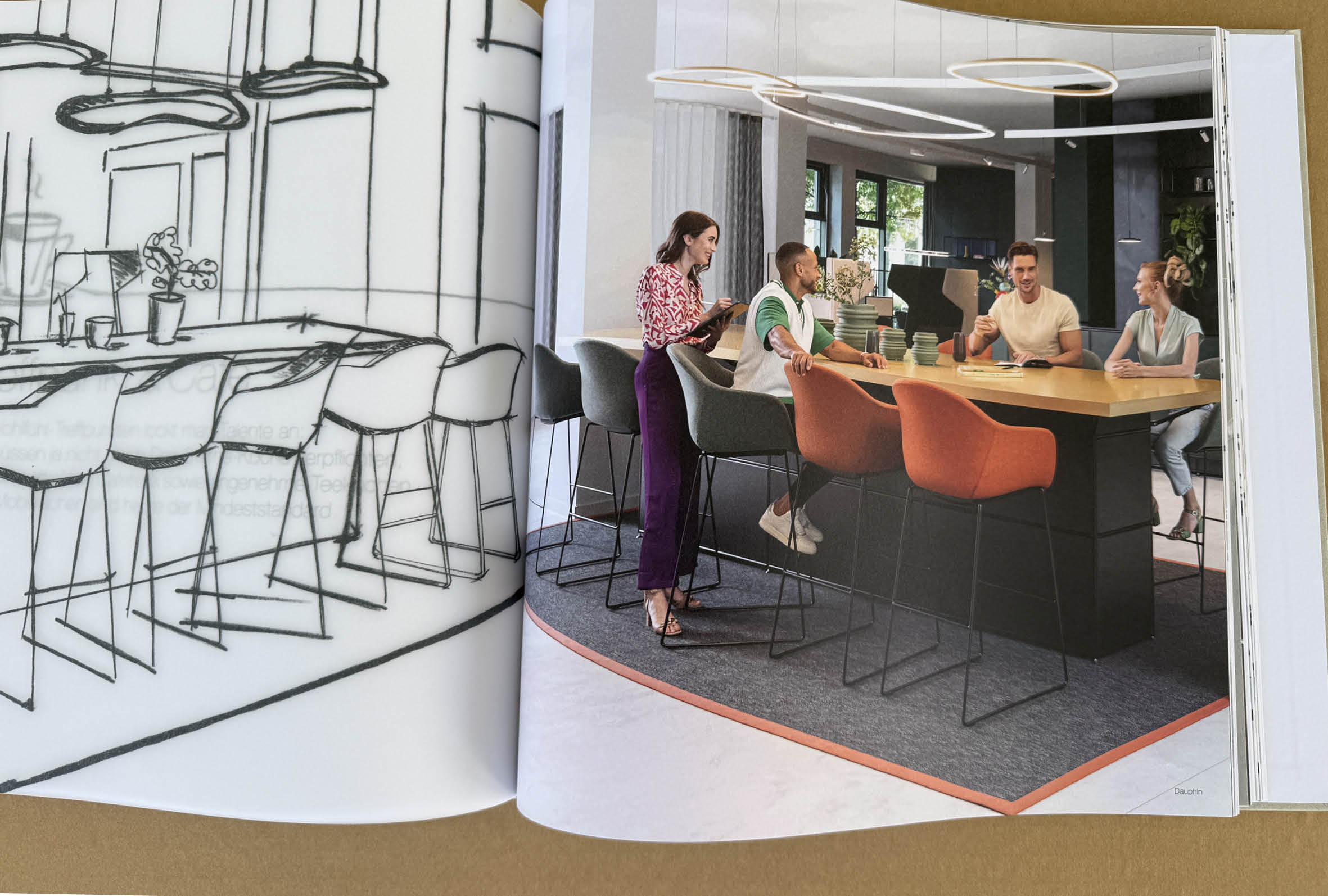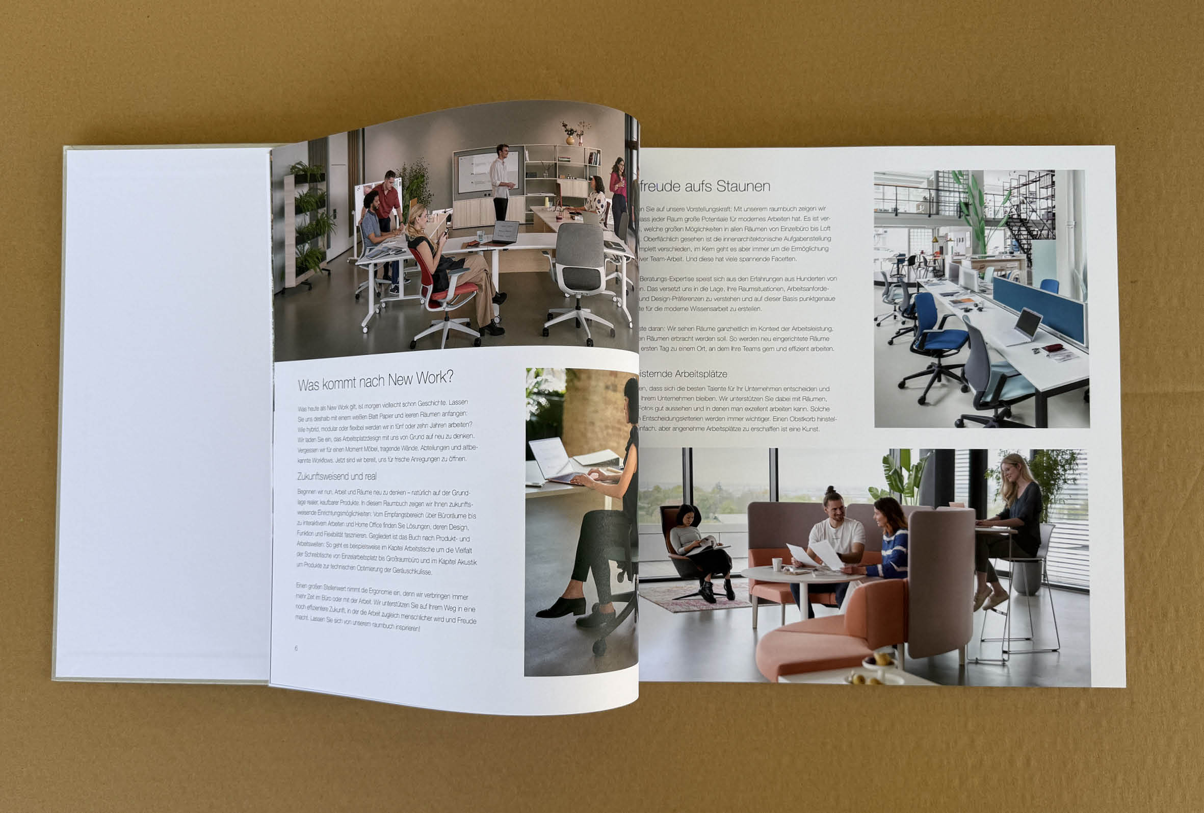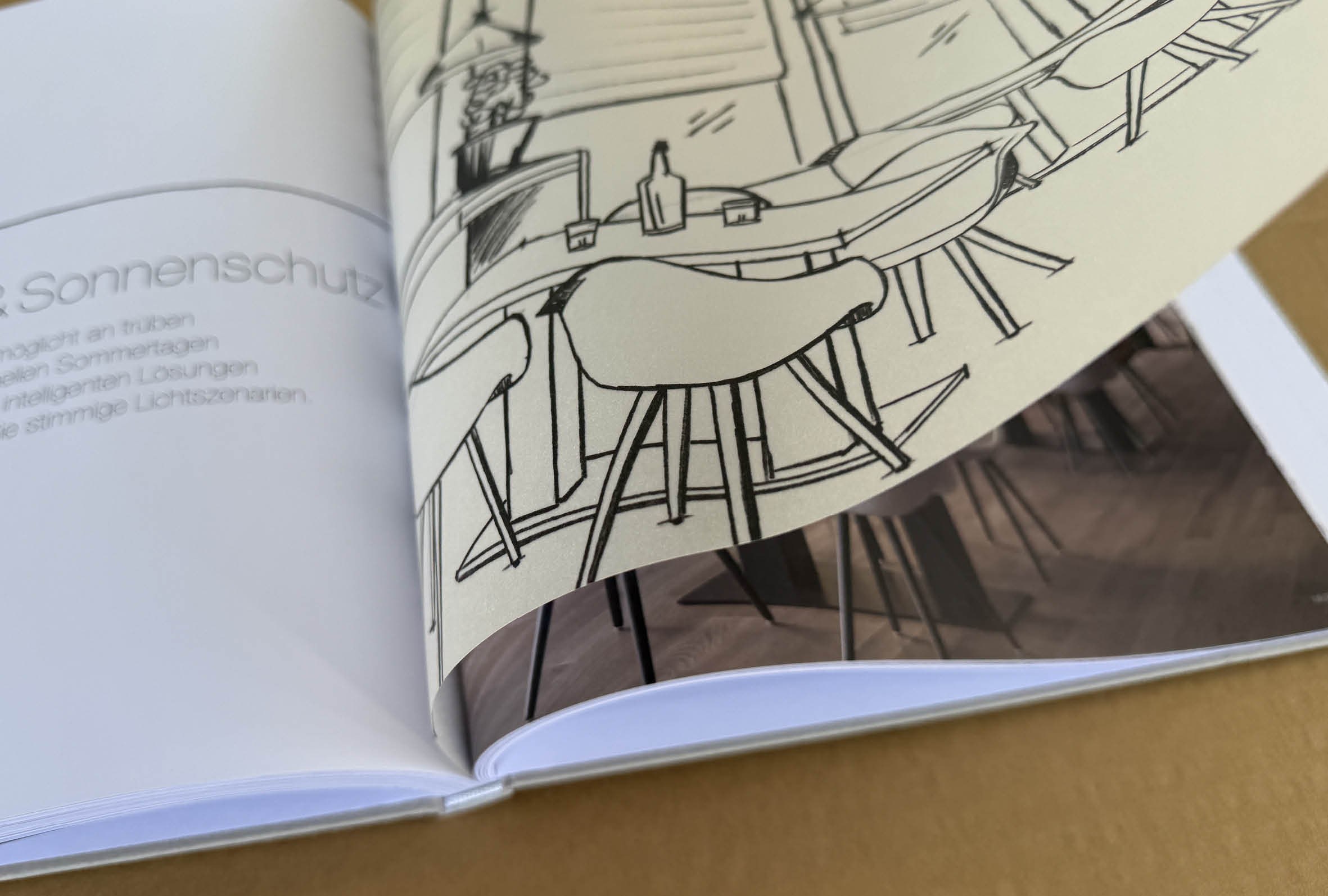 Darstellung der ganzheitlichen Raumgestaltungsexpertise anhand eines hochwertigen Werbemittels mit langanhaltender Verweildauer